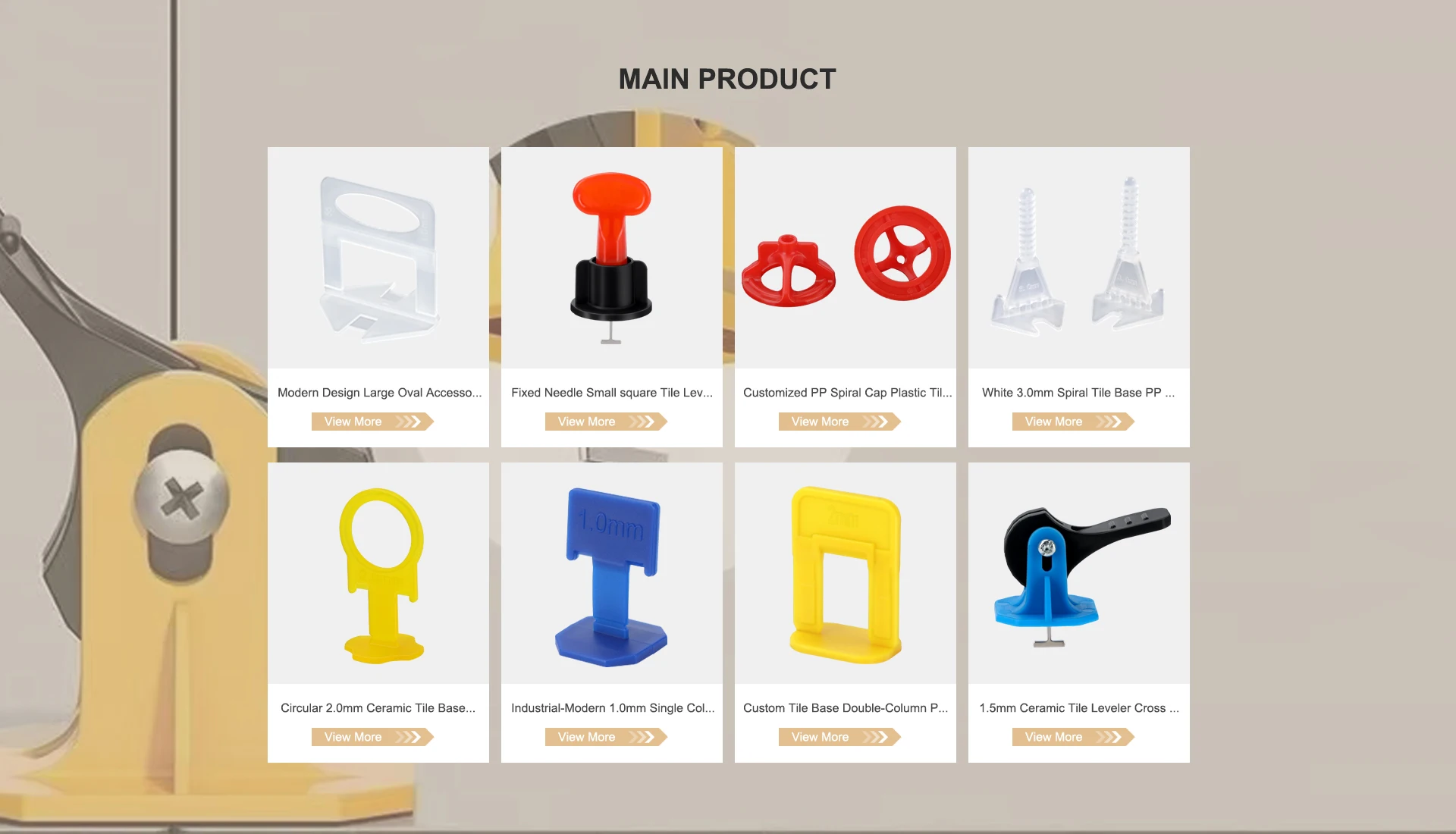 Productos principales:Nivelador de azulejos, Clips de azulejos en forma de cuña, espaciadores de azulejos de cerámica cruzados, alicates apretados de nivelación de azulejos, sistema de nivelación de azulejos en espiral